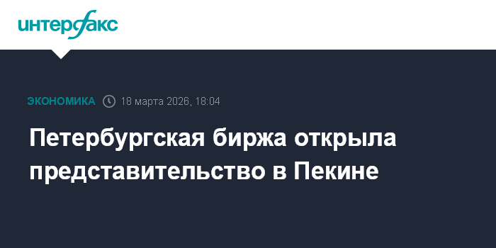 Москва. 18 марта. INTERFAX.RU - Официальное представительство Петербургской биржи зарегистрировано в Пекине, говорится в сообщении площадки.