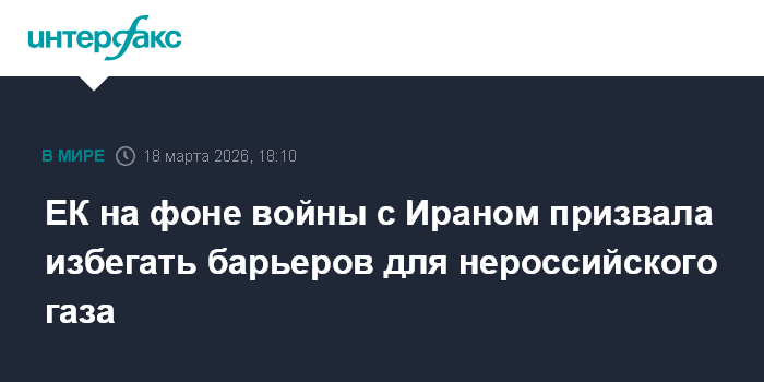 Москва. 18 марта. INTERFAX.RU - Еврокомиссия обозначила, что на фоне конфликта на Ближнем Востоке крайне важно избегать любых ненужных барьеров для импорта нероссийского газа в ЕС.