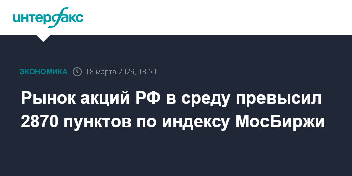 Рынок акций РФ в среду превысил 2870 пунктов по индексу МосБиржи