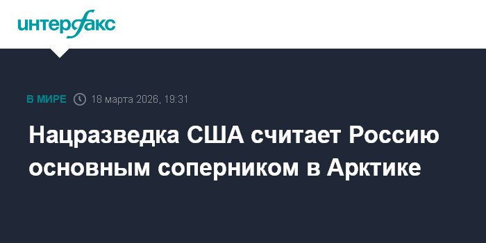 Москва. 18 марта. INTERFAX.RU - Россия является главным конкурентом США в Арктике, заявила в среду директор Национальной разведки Соединенных Штатов Тулси Габбард.