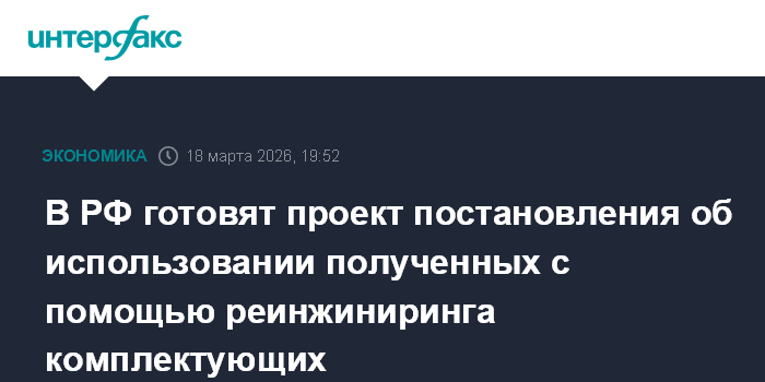 В РФ готовят проект постановления об использовании полученных с помощью реинжиниринга комплектующих