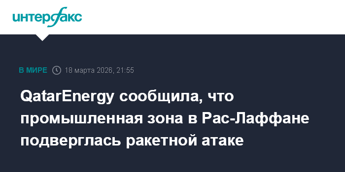 QatarEnergy сообщила, что промышленная зона в Рас-Лаффане подверглась ракетной атаке
