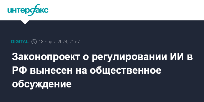 Проект федерального закона "Об основах государственного регулирования сфер применения технологий искусственного интеллекта в РФ" в среду размещен на портале проектов нормативных правовых актов для общественного обсуждения, которое завершится 15 апреля.