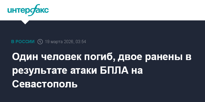 Москва. 19 марта. INTERFAX.RU - Мужчина погиб в результате атаки беспилотников на Севастополь, два человека ранены, сообщил губернатор города Михаил Развожаев.