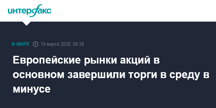 Москва. 19 марта. INTERFAX.RU - Рынки акций стран Западной Европы в основном завершили торги в среду в минусе на фоне эскалации конфликта на Ближнем Востоке, в результате которой цена нефти Brent приблизилась к отметке в $110 за баррель.