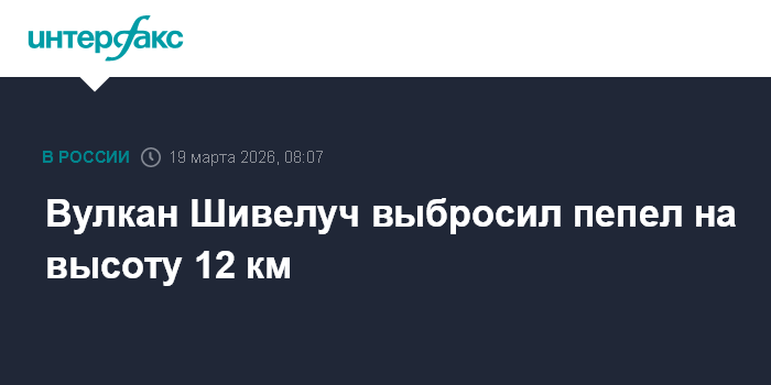 Москва. 19 марта. INTERFAX.RU - На Камчатке вулкан Шивелуч выбросил столб пепла на высоту до 12 км над уровнем моря, сообщает Камчатский филиал Единой Геофизической службы РАН.