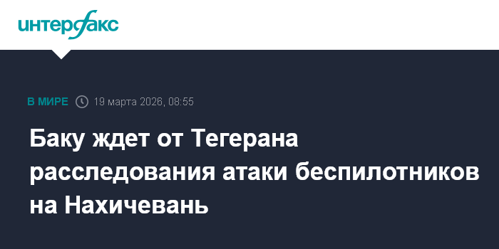 Москва. 19 марта. INTERFAX.RU - Баку ждет от Ирана выполнения заверения о всестороннем расследовании инцидента с ударом беспилотниками по Нахичеваню и примет необходимые меры для предотвращения подобных инцидентов в будущем, заявил глава МИД Азербайджана Джейхун Байрамов. Об этом министерство сообщило в соцсетях.