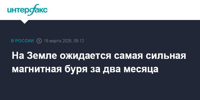 Москва. 19 марта. INTERFAX.RU - В четверг ожидается начало магнитной бури, которая, по прогнозу, должна стать самой сильной с середины января текущего года, сообщили в четверг в лаборатории солнечной астрономии Института космических исследований РАН и Института солнечно-земной физики.