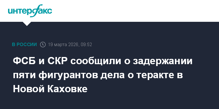 ФСБ и СКР сообщили о задержании пяти фигурантов дела о теракте в Новой Каховке