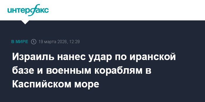 Москва. 19 марта. INTERFAX.RU - Израильские ВВС впервые нанесли удары по иранской базе и военным кораблям в Каспийском море, сообщает издание Ynet.
