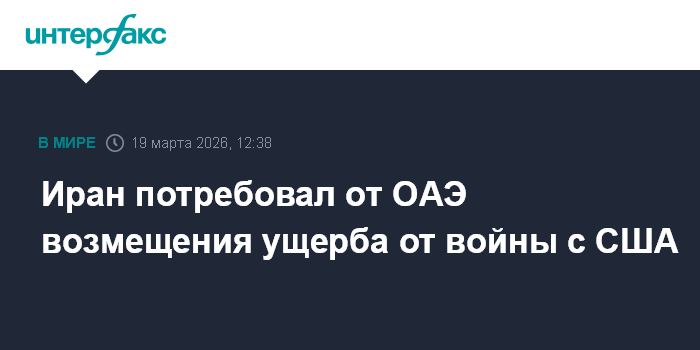 Москва. 19 марта. INTERFAX.RU - Иран потребовал от ОАЭ компенсаций за ущерб, нанесенный боевыми действиями, поскольку территория этой страны использовалась Соединенными Штатами для нанесения ударов по Ирану.