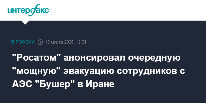 Москва. 19 марта. INTERFAX.RU - Госкорпорация "Росатом" планирует очередной "мощный" этап эвакуации сотрудников с АЭС "Бушер" в Иране, как только позволит обстановка, сообщил журналистам глава компании Алексей Лихачев.