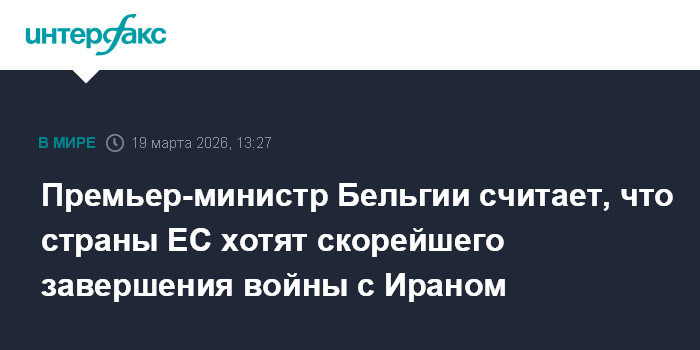 Премьер-министр Бельгии считает, что страны ЕС хотят скорейшего завершения войны с Ираном