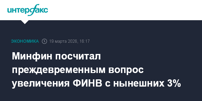 Минфин посчитал преждевременным вопрос увеличения ФИНВ с нынешних 3%