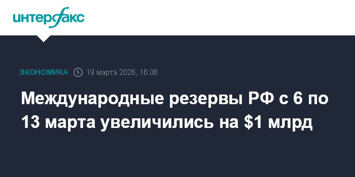 Международные резервы РФ с 6 по 13 марта увеличились на $1 млрд