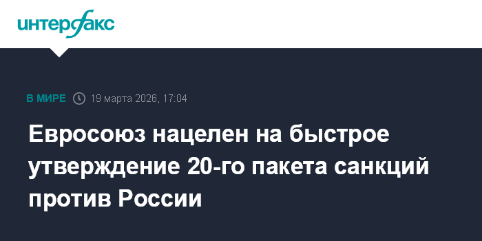 Евросоюз нацелен на быстрое утверждение 20-го пакета санкций против России