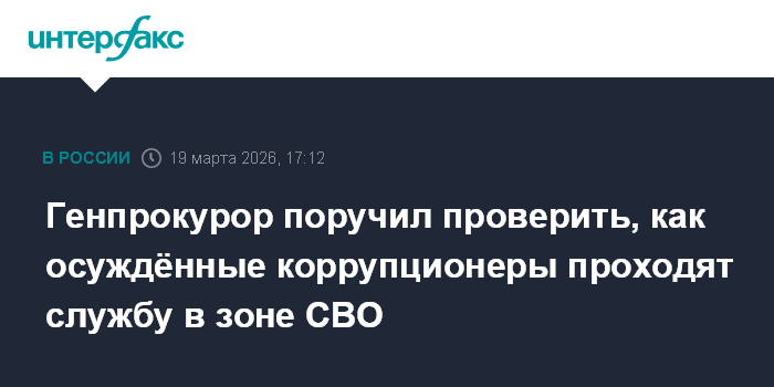Генпрокурор поручил проверить, как осуждённые коррупционеры проходят службу в зоне СВО