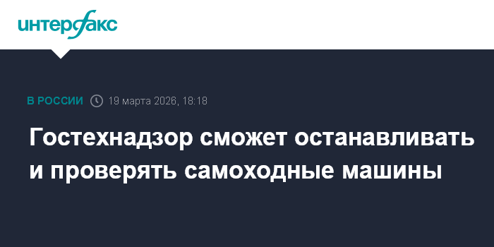 Москва. 19 марта. INTERFAX.RU - Правительство РФ внесло в Госдуму законопроект, наделяющий региональные органы Гостехнадзора правом проверять самоходные машины непосредственно в местах их эксплуатации – на полях, стройплощадках, в лесах и карьерах – в режиме так называемого постоянного рейда.