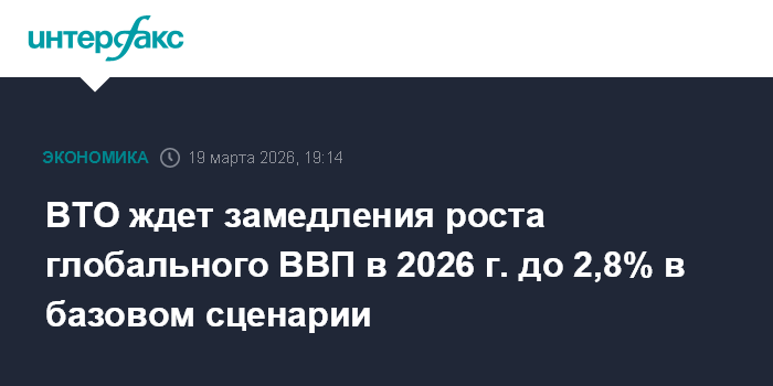 ВТО ждет замедления роста глобального ВВП в 2026 г. до 2,8% в базовом сценарии