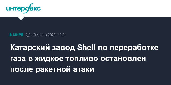 Москва. 19 марта. INTERFAX.RU - Завод по производству жидкого синтетического топлива Pearl GTL в катарском Рас-Лаффане, крупнейший в мире, приостановил работу после иранского ракетного удара, сообщает владеющий объектом британо-нидерландский нефтегазовый гигант Shell.