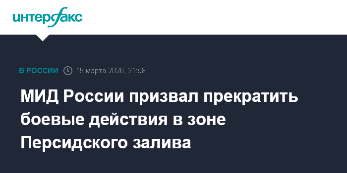 Москва. 19 марта. INTERFAX.RU - Россия призвала к прекращению боевых действий в зоне Персидского залива, выразила готовность содействовать урегулированию конфликта и поиску решений имеющихся разногласий политико-дипломатическими средствами.