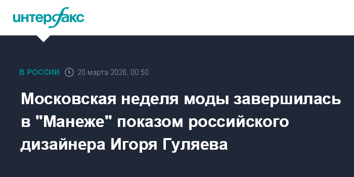 Московская неделя моды завершилась в "Манеже" показом российского дизайнера Игоря Гуляева