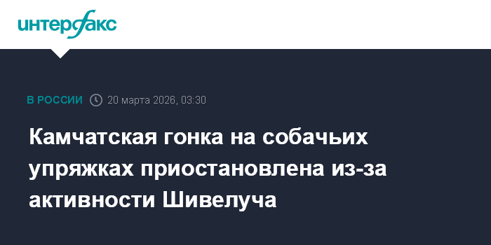 Москва. 20 марта. INTERFAX.RU - Гонка на собачьих упряжках "Берингия", стартовавшая на Камчатке 1 марта, приостановлена из-за выброса пепла с вулкана Шивелуч, сообщают в пятницу организаторы гонки.