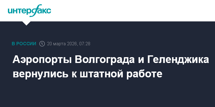 Москва. 20 марта. INTERFAX.RU - Временные ограничения на прием и выпуск воздушных судов сняты в аэропортах Волгограда и Геленджика, сообщили в Росавиации в пятницу.
