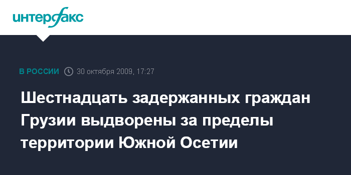 Москва. 30 октября. INTERFAX.RU - МИД Южной Осетии сообщил об освобождении всех задержанных 25-26 октября граждан Грузии, незаконно проникших на южноосетинскую территорию, и их выдворении за пределы страны.