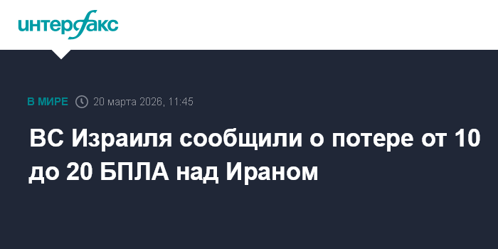Москва. 20 марта. INTERFAX.RU - Израильская армия лишилась более десяти беспилотников в ходе воздушных операций над Ираном, сообщает The Times of Israel со ссылкой на израильских военных.