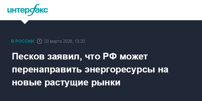 Песков заявил, что РФ может перенаправить энергоресурсы на новые растущие рынки