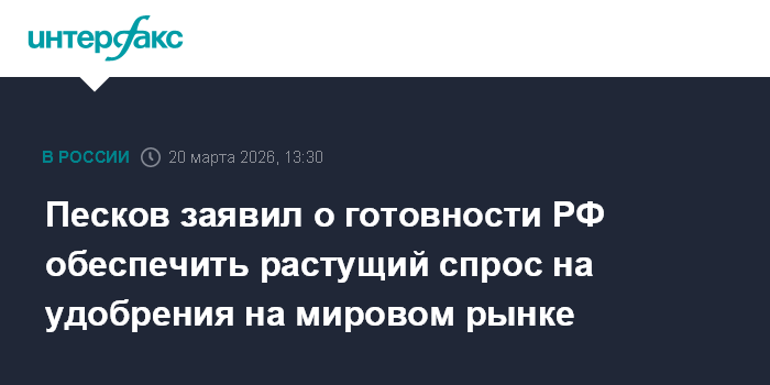 Песков заявил о готовности РФ обеспечить растущий спрос на удобрения на мировом рынке