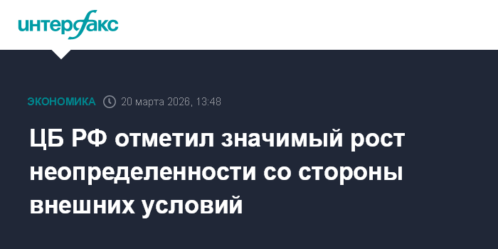 Москва. 20 марта. INTERFAX.RU - Неопределенность со стороны внешних условий значимо выросла, говорится в пресс-релизе ЦБ РФ по итогам заседания совета директоров.