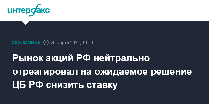 Рынок акций РФ нейтрально отреагировал на ожидаемое решение ЦБ РФ снизить ставку
