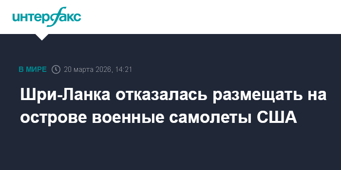 Москва. 20 марта. INTERFAX.RU - Шри-Ланка ответила отказом на запрос США в начале марта о приеме американских военных самолетов в гражданском аэропорту на юге острова, заявил президент страны Анура Кумара Диссанаяке.