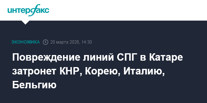 Повреждение линий СПГ в Катаре затронет КНР, Корею, Италию, Бельгию