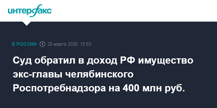 Суд обратил в доход РФ имущество экс-главы челябинского Роспотребнадзора на 400 млн руб.