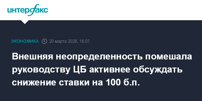 Внешняя неопределенность помешала руководству ЦБ активнее обсуждать снижение ставки на 100 б.п.