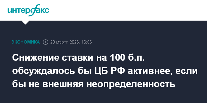 Снижение ставки на 100 б.п. обсуждалось бы ЦБ РФ активнее, если бы не внешняя неопределенность