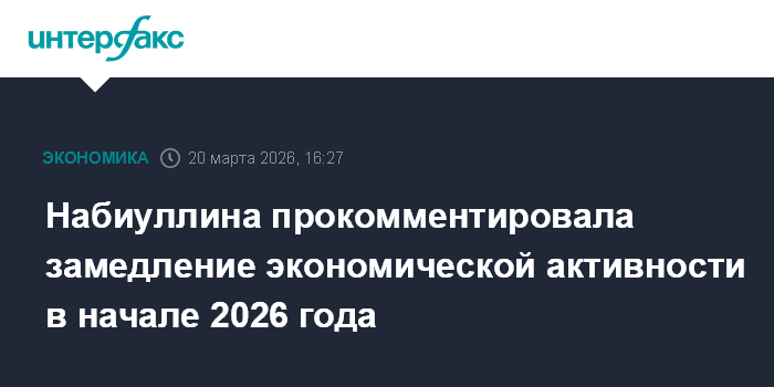 Москва. 20 марта. INTERFAX.RU - Экономическая активность в России в начале 2026 года складывается ниже ожиданий ЦБ на I квартал, но в целом прогноз по росту ВВП на 2026 год в 0,5-1,5% пока сохраняется, заявила на брифинге глава Банка России Эльвира Набиуллина.
