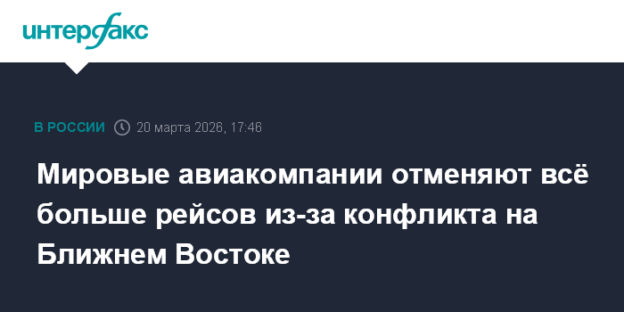 Москва. 20 марта. INTERFAX.RU - Глобальные авиаперевозки по-прежнему серьезно нарушены из-за войны в Иране, которая привела к закрытию ключевых ближневосточных аэропортов, включая Дубай, Доху и Абу-Даби.