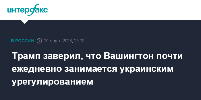 Москва. 20 марта. INTERFAX.RU - Администрация США почти каждый день занимается контактами по украинскому урегулированию, заявил американский президент Дональд Трамп.