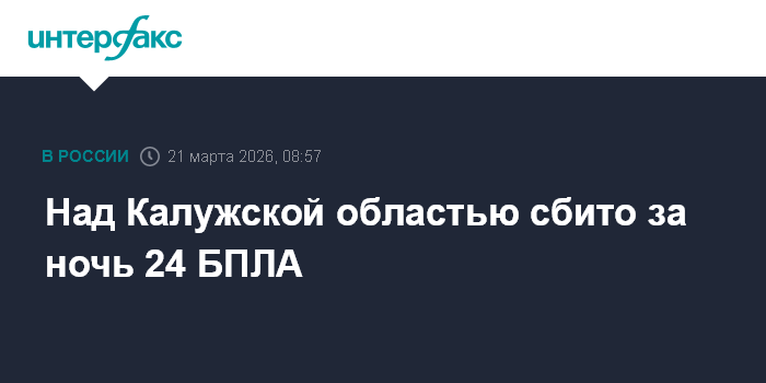 Москва. 21 марта. INTERFAX.RU - В ночь на субботу над Калужской областью было ликвидировано 24 украинских беспилотника, сообщил губернатор Владислав Шапша.