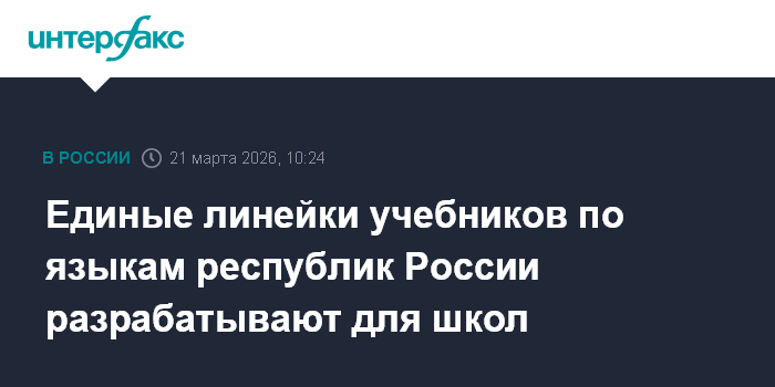 Москва. 21 марта. INTERFAX.RU - Единые линейки учебников родных и государственных языков республик России появятся в российских школах, учебники обеспечат методическое сопровождение федеральных рабочих программ, сообщили в пресс-службе Минпросвещения РФ.