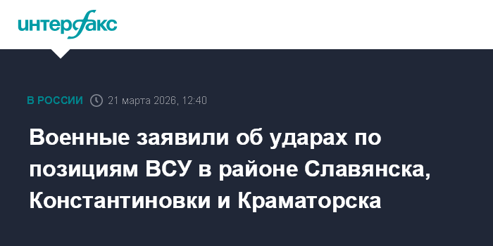 Военные заявили об ударах по позициям ВСУ в районе Славянска, Константиновки и Краматорска