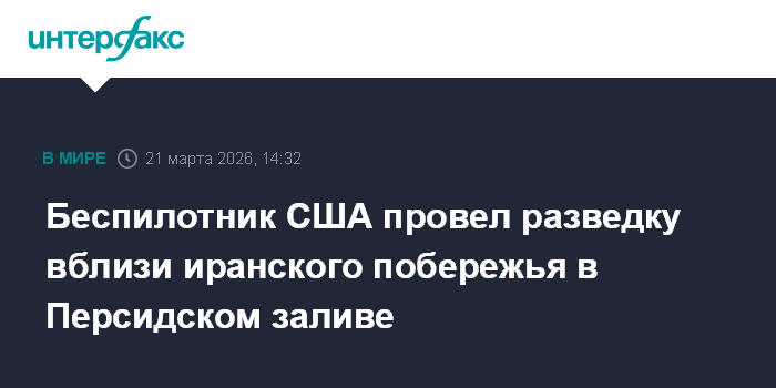 Москва. 21 марта. INTERFAX.RU - Дальний беспилотник радиоэлектронной разведки MQ-4C Triton ВМС США в субботу провел длительный полет над Персидским заливом вблизи иранского побережья, следует из данных авиационного ресурса Flightradar24.