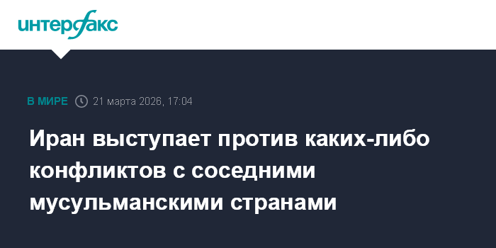Москва. 21 марта. INTERFAX.RU - Тегеран не намерен вступать в противостояние с соседними мусульманскими странами, заявил в субботу президент Ирана Масуд Пезешкиан.