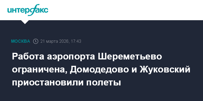 Работа аэропорта Шереметьево ограничена, Домодедово и Жуковский приостановили полеты