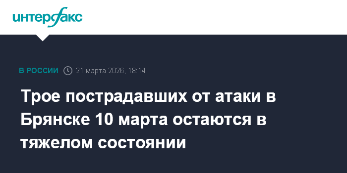 Трое пострадавших от атаки в Брянске 10 марта остаются в тяжелом состоянии