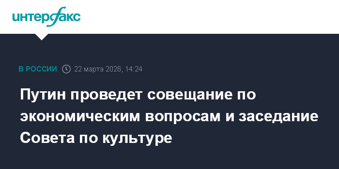 Москва. 22 марта. INTERFAX.RU - Президент РФ Владимир Путин на будущей неделе проведет совещание по экономическим вопросам и заседание Совета по культуре.